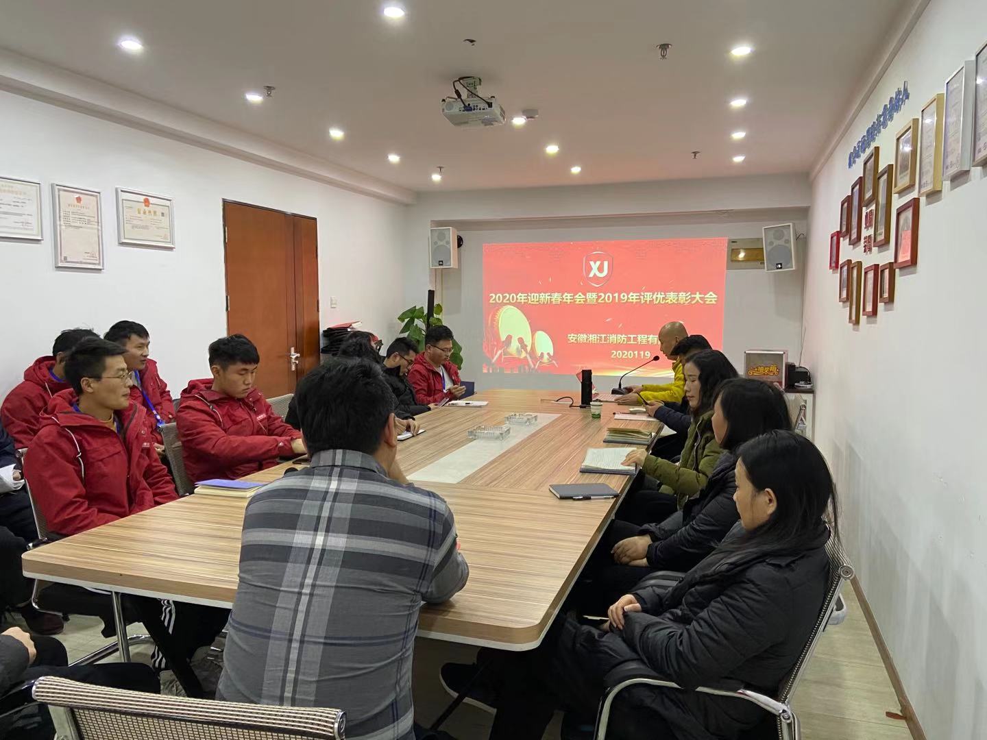豪情欢歌辞旧岁,喜气开篇迎新年,2020年1月19日下午5点,安徽湘江消防工程有限公司“2020年迎新春年会暨2019年评优表彰大会”在公司会议室隆重举行,公司总经理刘涛携公司高管及全体员工20余人欢聚一堂,共度联欢。