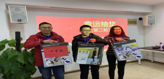幸运抽奖环节向来是年会中备受期待的保留项目,为了让与会的员工都能满载而归,公司为大家准备了从书籍到健身器械多份精美的奖品,抽奖活动共分5轮进行,抽奖级别从五等奖到一等奖。